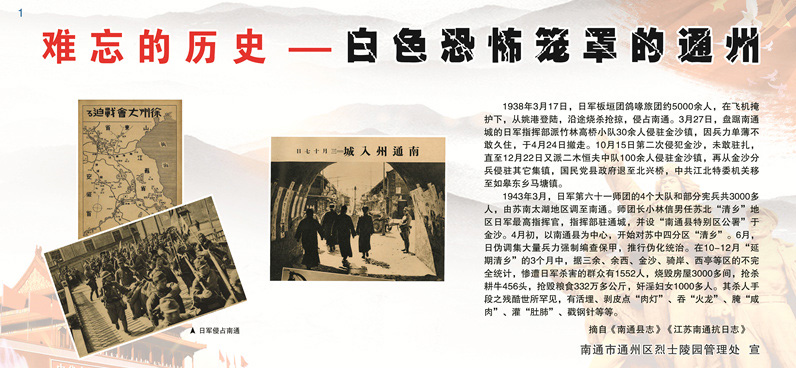 通州区烈士陵园的前身是1946年4月小海、观音山战斗中牺牲的烈士墓地。同年10月,侵占金沙镇的国民党军队将墓平毁。人民政府于解放初修复墓地,此后又多次扩建、重建墓地,1970年4月此墓区被命名为"南通县烈士陵园"。1997年,因纪念碑年久失修,碑体倾斜,中共通州市委、通州市人民政府筹集资金140万元,又一次予以重建。新碑高23米,碑面上"死难烈士万岁"几个大字金光闪闪,背景上方是长16米、高3米的红旗,下方为花岗石浮雕群。2020年,通州区委区政府再次筹集资金2500万元,用于重建革命纪念馆。